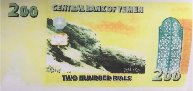 وتظهر في العملة صورة لقلعة زبيد فيما تظهر في الجانب الآخر منظر من مدينة حوف في محافظة المهرة .