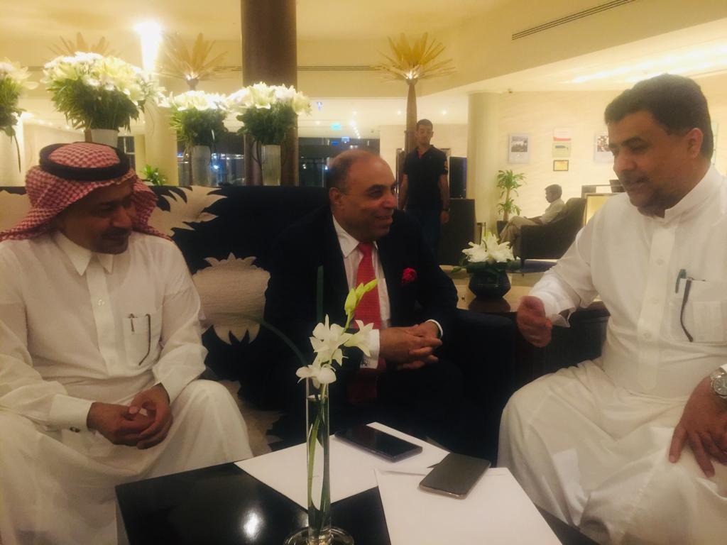 على هامش التحضيرات والترتيبات الجارية لاقامة بطولة الصداقة السعودية اليمنية للملاكمة العربية للمحترفين أستقبل الشيخ احمد العيسي نائب مدير مكتب رئيس الجمهورية رئيس الاتحاد العام لكرة القدم ، اليوم، الدكتور الهادي السديري، رئيس الاتحاد الدولي للملاكمة العربية للمحترفين، عبدالاله الزير رئيس شركة الياقوت الأحمر السعودية، الراعية لبطولة الصداقة اليمنية السعودية للملاكمة العربية للمحترفين