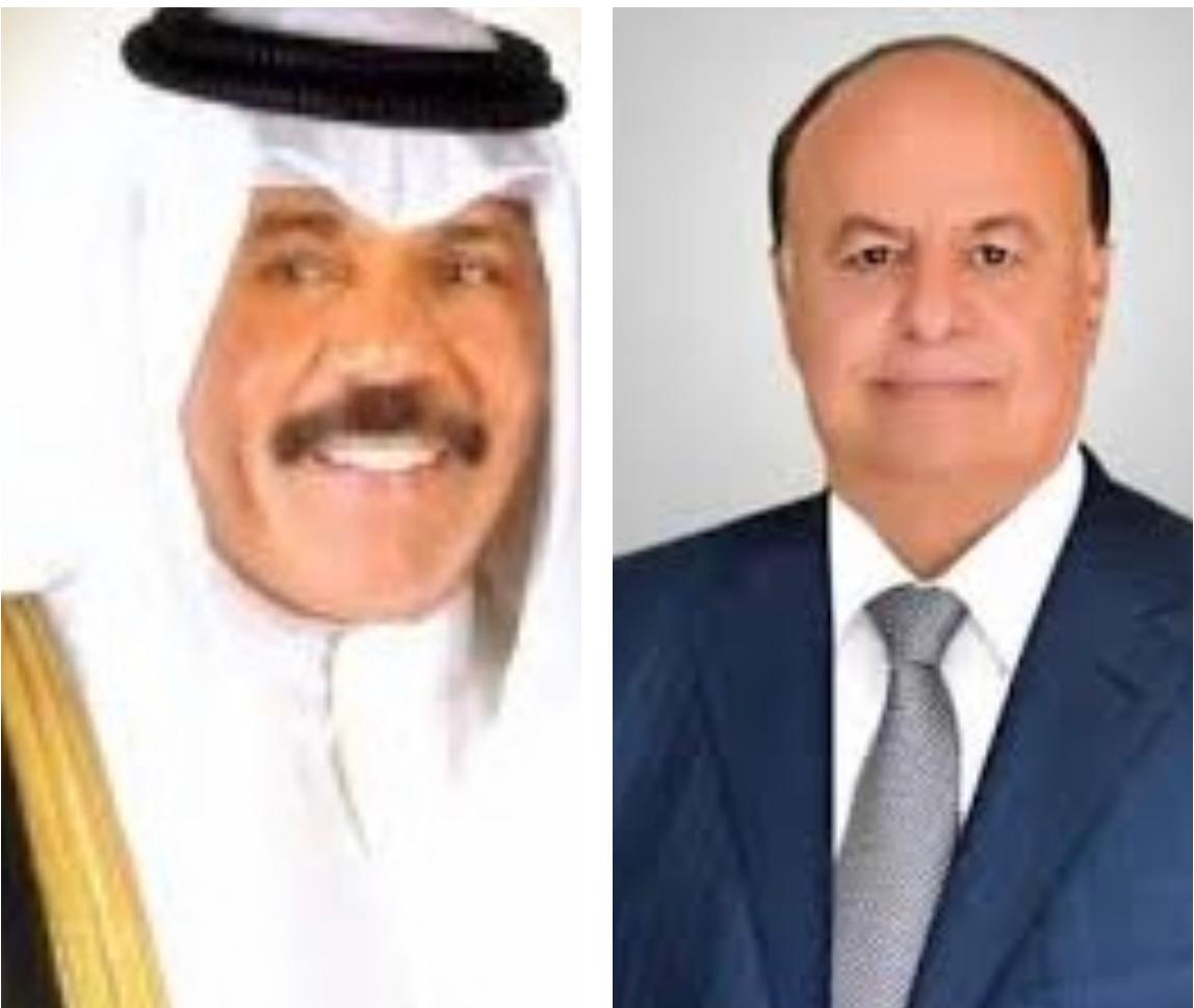 بعث فخامة الرئيس عبدربه منصور هادي رئيس الجمهورية، اليوم، برقية عزاء ومواساة، الى أخيه امير دولة الكويت الشقيقة صاحب السمو الشيخ نواف الأحمد الجابر الصباح، عزاه فيها بوفاة الشيخ ناصر صباح الأحمد الجابر الصباح.