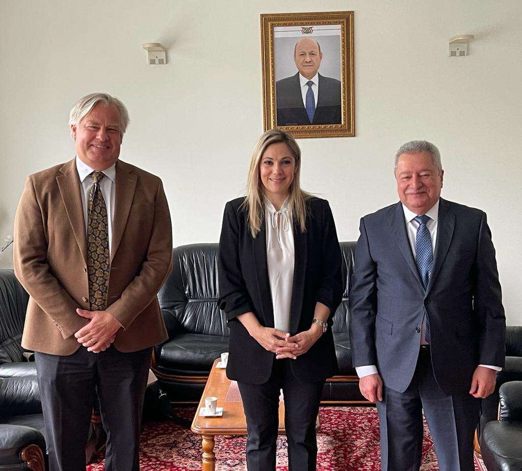 ومن جانبها أكدت السفيرة دعم الإتحاد الأوربي لمجلس القيادة الرئاسي، والعمل مع المبعوث الأممي للتوصل إلى سلام دائم في اليمن يجنب الشعب اليمني المزيد من المعاناة.