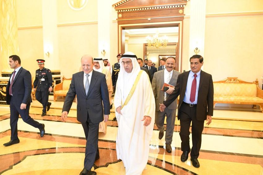 واشاد الرئيس بالدعم الدبلوماسي البحريني الكبير الذي تحظى به القضية اليمنية في المحافل الاقليمية والدولية، ضمن تحالف دعم الشرعية بقيادة الاشقاء الاوفياء في المملكة العربية السعودية ودولة الامارات العربية المتحدة.
