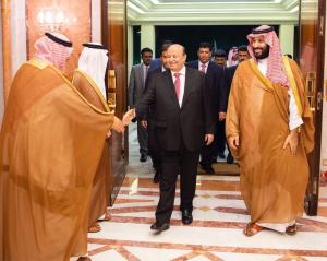لقاء فخامة رئيس الجمهورية اليوم مع سمو ولي العهد الأمير محمد بن سلمان بن عبدالعزيز يؤكد مستوى الاهتمام الكبير من القيادة السعودية بالاوضاع في اليمن ويعكس مدى الجدية الكاملة في تحقيق اهداف التحالف المتمثلة في إنهاء الانقلاب واستعادة الدولة .
